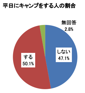 また、「平日にキャンプをする」人は50.1%と半数を超え、平日の利用が多いソロキャンパーは21年13.1%からさらに3.5ポイント伸び16.6%となった。