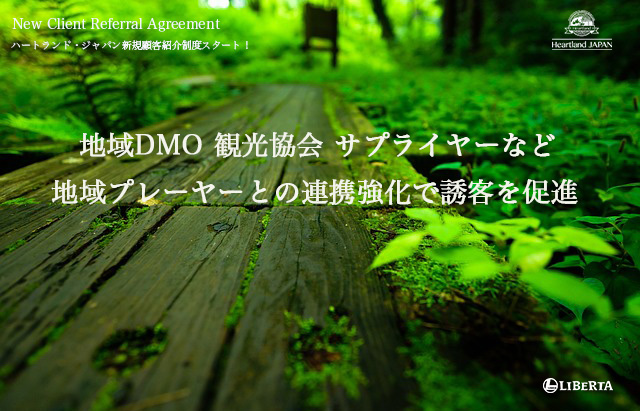 ハートランド・ジャパン(リベルタ株式会社)(本社:東京都新宿区、代表取締役:澤野 啓次郎、以降ハートランド・ジャパン)は、地域パートナー制度(地域プレーヤーの訪日客受入を支援する訪日対応代行サービス:主に欧米豪を対象)の一環として、この度、「新規顧客紹介制度」を開始しました。地域の観光協会やDMO、宿泊施設、体験サプライヤーなどが抱える受入の課題を解決し、地域誘客を促進すると同時に、訪日顧客との契約が成立した際に紹介料(※1)を見返りとして還元するスキームとして展開します。