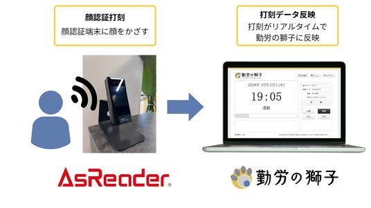 これにより、「勤労の獅子」を利用する企業は、従来のICカードやスマートフォンを使った打刻に加え、 非接触・高精度な出退勤管理が可能となります。リアルタイムのデータ反映による勤怠管理の効率化となりすまし対策によるセキュリティ向上を実現します。