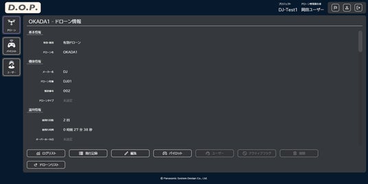 運用後、機体ログデータを抜き出し、DOP SUITE(TM)にアップロードすることで機体管理や