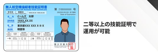 無人航空機操縦者技能証明書「二等」以上で運用が可能