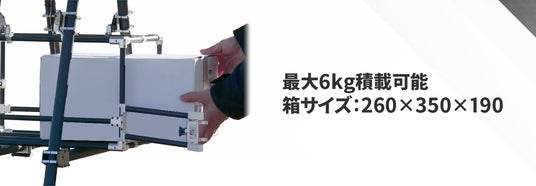 最大離陸重量24.0kg。最大搭載重量は6.0kg。宅配荷物、郵送物、食料品、日用品、雑