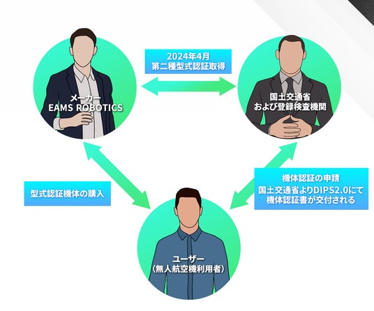 ※型式認証制度とは、国土交通省が航空法に基づき、特定飛行に資することを目的とする型式の無人航空機の強度、構造及び性能について、設計及び製造過程が安全基準及び均一性基準に適合するか検査し、安全性と均一性を確保するための認証制度です。
