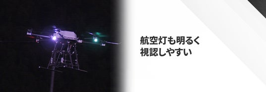 夜間飛行は目視内での運用に限りますが、こちらも申請不要で運用することができます。航空灯が大変明るく遠方からでも十分視認が可能です。「日が落ちてきたので、本日の作業は終了です」といったようなことはなく、時間いっぱいにフライト作業を継続することができ、作業効率も大幅に向上します。