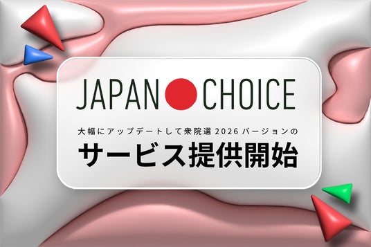 「JAPAN CHOICE」は、2017 年、特定のイデオロギーに固執しない政治的公平性を担保しつつ、 事実と解釈を分別した網羅的な政治情報の発信を開始しました。全ての有権者に対して、 投票に行く際の手助けとなる情報を提供することを目的としており、 昨年七月の参議院選挙では約260万人のアクティブユーザーさまに利用していただいています。今回はそのアップグレード版の公開を予定しています。