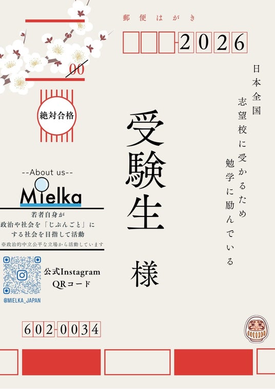 そこでNPO法人Mielkaは、京都府内の大学入試会場周辺(2月3日:京都先端科学大学、2月4~6日:大谷大学)にて、受験生に特化した啓発ビラを配布します。ビラでは、数分で自分にぴったりの政党が見つかる「投票ナビ」を紹介。さらに、現役大学生による「受験期の選挙体験記」を掲載し、かつて同じ状況を経験した先輩たちの視点から、多忙な受験期における「政治との接点の持ち方」を、先輩たちの視点から提示します。
