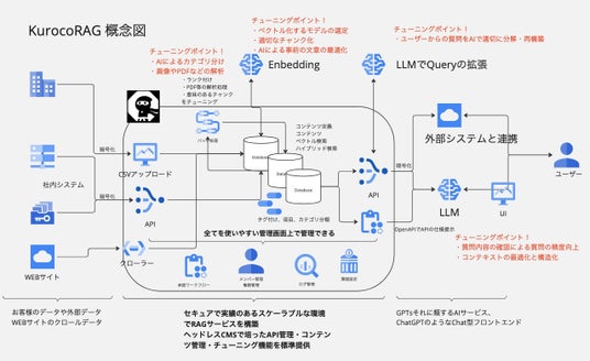 そこで、国産のエンタープライズ向けのヘッドレスCMSであるKurocoもAI Interfaceとして、RAGシステムに対応したKuroco RAGの開発をいたしました。