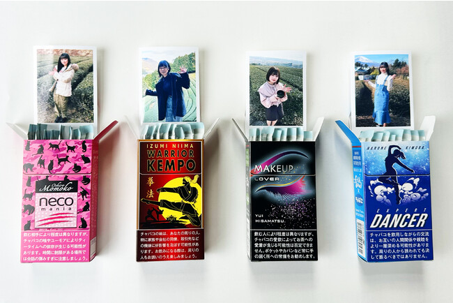 各メンバーの顔のイラストや特技、好きな色やものなどをモチーフとしたパッケージの中には、各メンバーの出身地の茶葉を使ったスティック茶が封入。加えて、一定の割合で、各メンバーが原料生産者のもとを訪れて撮影したスペシャルフォトが封入された“レアちゃばこ”が自動販売機から出てくる可能性も・・・!