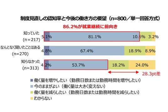 制度認知者は86.2%が就業継続に前向き(認知有無で28.3ポイント差)