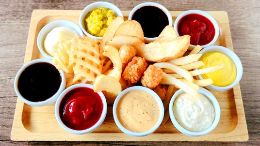 たくさんのソースが使い放題の、名物フライドポテト