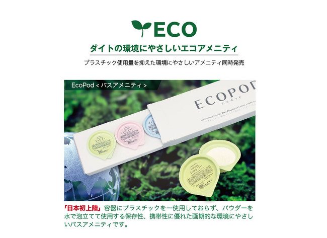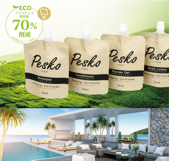 プラスチックを減らす工夫として詰替え式の大容量ボトルを設置するホテル様や旅館様もありますが、使い回しのイメージになる為、不衛生と感じられ高級感が損なわれる等の新たな課題が生じています。