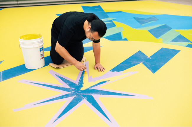 私にとっては、過去にないほどのスケールのキャンバスにペインティングが描けるということは、とても魅力的でした。加えて、パブリックアートという、その地域に住む人々やその場所を訪れる人々にとって、アートを身近に感じるきっかけにもなる、とても有意義なプロジェクトだとも感じました。