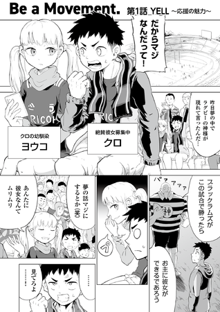NTTジャパンラグビーリーグワン2022開幕を記念して、リコーブラックラムズ東京は、ファンや選手などチームに関わる人たちを主人公にしたオリジナルマンガBlackRamsTokyo STORY “Be a Movement.”の連載を開始しました。連載は、2021年1月16日から2022年5月7日までです。漫画家は、LINEマンガで連載された『ノブナガブロックチェーン』の作者の小野小太郎先生で、トレンド・プロが編集協力を担当しております。