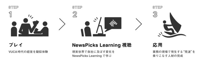 プレイヤーがゲーム内で変化や失敗を経験しながら現実世界における学びのヒントを得て、NewsPicks Learning内の動画コンテンツで知見を深めるプログラムを提供することで、変化に強い社員の育成を目指す企業を支援します。