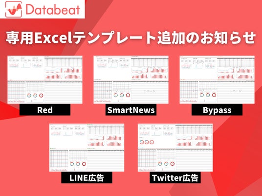 アジト株式会社(東京都千代田区、代表取締役:高井 康辰、以下アジト)は、広告レポート自動化ツール「Databeat」において、新たに「Red」「SmartNews」「Bypass」「LINE広告」「X(旧Twitter)広告」の運用データの可視化に特化したExcelレポートテンプレートを追加いたしました。