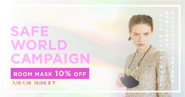 アクセサリーブランド『ROOM』は、発売から約半年でシリーズ累計販売枚数1万枚を突破した人気商品「active mask」を、2021年1月15日(金)~2021年1月18日(月)13:00まで10%OFFで販売いたします。「active mask」は、コーディネートに合わせて選べる「ファッション性の高さ」や長時間の着用でも快適な状態が続く「使用感」がご好評をいただいている人気商品です。
