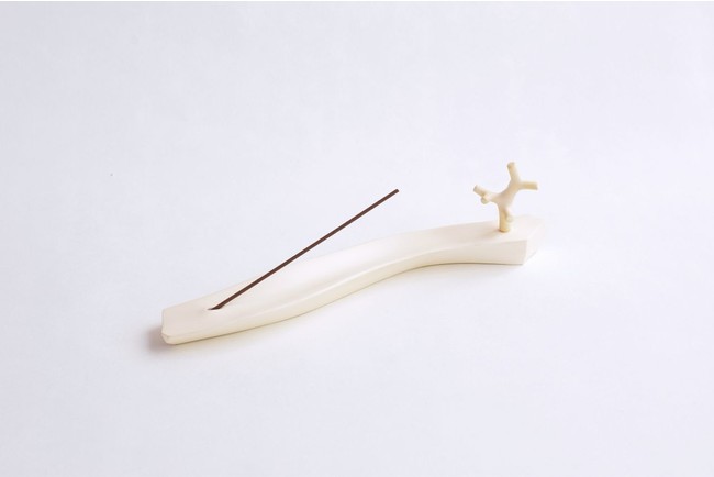 お香を斜めに挿すタイプで、灰が散らばらずに小道に落ちる角度にしています。柔らかな曲線と一本の木が特徴です。
