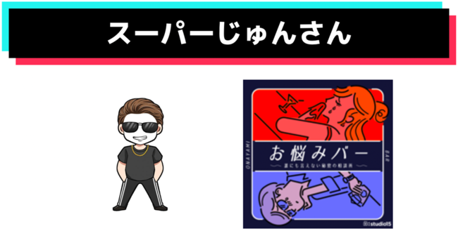 【ポッドキャスト番組内容】このポッドキャストでは、人生や恋愛に悩む男女のガチ相談に真正面から向き合っている TikTokクリエイターのスーパーじゅんさんが、現代の恋愛や人生における幸せにあり方についてお話しています。寝る前のリラックスタイムのおともにお楽しみください。 この番組は皆様からのお便りを元に構成されています。