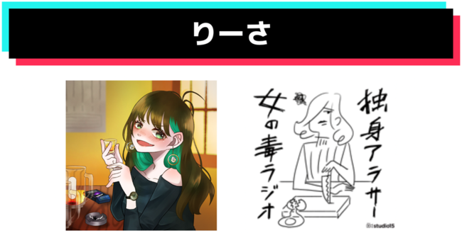 TikTokのインフルエンサー施策では、studio15に属するインフルエンサーでTiktok配信が可能です。なお、TikTok配信だけではなくPodcastも合わせて配信しているクリエイターもおり、下記のクリエイターでは、同じクリエイターのTikTok広告とPodcast広告、双方への広告出稿も可能です。