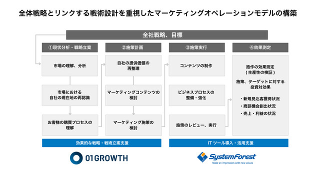 この実践で得た経験値により、マーケティングオペレーションを自社で採用することが難しい企業様に対してシステムフォレストがオペレーションモデルの構築及びシステムを含めた運用基盤を提供し、安定したオペレーションの実現を支援してまいります。