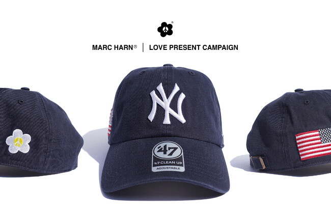MARC HARNの人気モデルであるピースフラワー '47キャップを2名様、ピースフラワー日本製ラグを1名様、特製ポストカード&ステッカーセットを20名様にプレゼント。