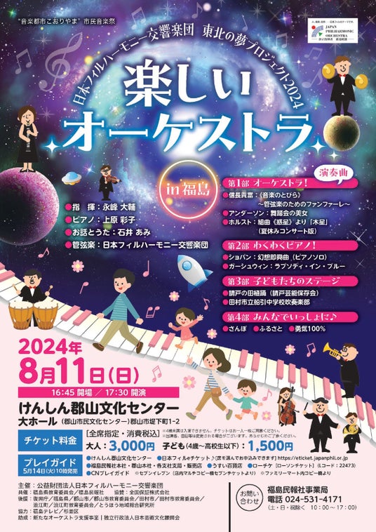 東北の夢プロジェクト2024 楽しいオーケストラin福島2024年8月11日 (日)17:30 開演( 16:45 開場 )