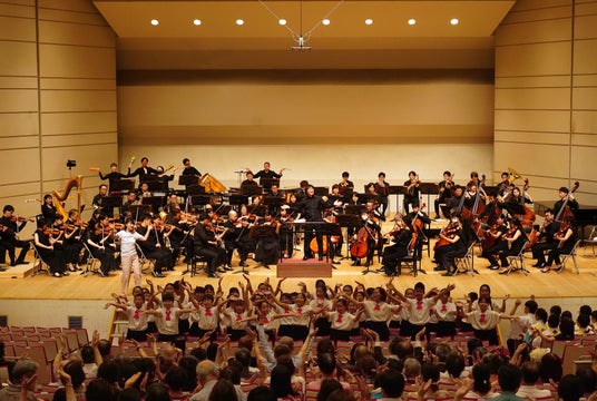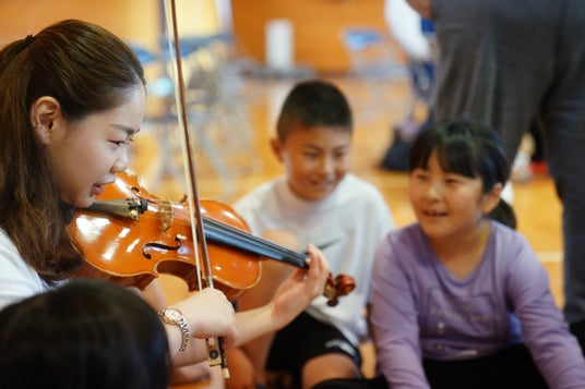 「東北のさらなる復興を進めるために、子どもたちの笑顔を応援する」との思いから、東北各地で個性あふれる郷土芸能や合唱・吹奏楽・オーケストラなどに熱心に取り組む子どもたちを共演者として招き、オーケストラと共にコンサートを作り上げます。また各団体を事前に訪問してミニコンサート、ワークショップ、レッスンなどの交流事業を実施し、オーケストラのメンバーと子どもたちの触れ合いが生まれています。プロの演奏家の素顔や演奏に触れることで子どもたちが大きな触発を受けて、「事業を通じて飛躍的な成長を遂げることができた」との声も数多く寄せられています。