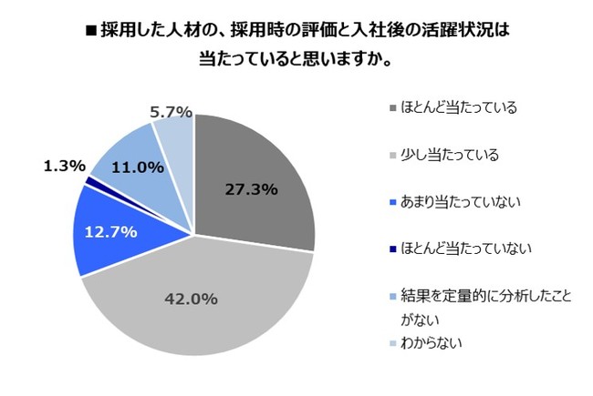 2.担当者の14%が採用時の評価と入社後の活躍状況が当たっていないと自覚