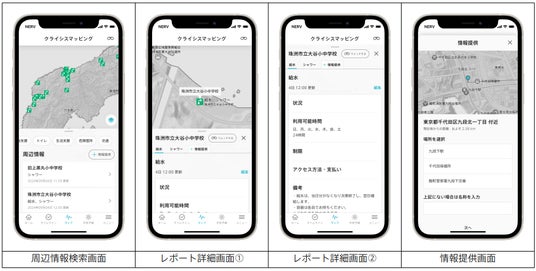 そこで、NERV防災アプリでは、災害や支援に特化したデータフォーマットを作成し、クライシスマッピングによって情報を収集する試みを行うこととしました。