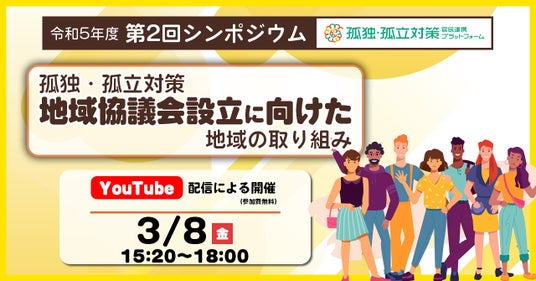 令和6年3月8日に孤独・孤立対策官民連携プラットフォーム 令和5年度 第2回シンポジウム「孤独・孤立対策地域協議会設立に向けた地域の取り組み」を開催いたします。