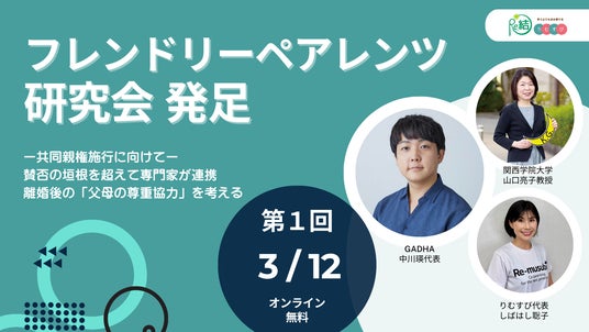 「離婚後も親子が関わり続ける社会」を目指し、離婚後の共同養育支援を行う一般社団法人りむすび(所在:東京都、代表:しばはし聡子)は、2026年4月1日の改正民法(共同親権)施行に先立ち、専門家が賛否を超えて、別居離婚後の父母の尊重協力を考える「フレンドリーペアレンツ研究会」を発足いたします。