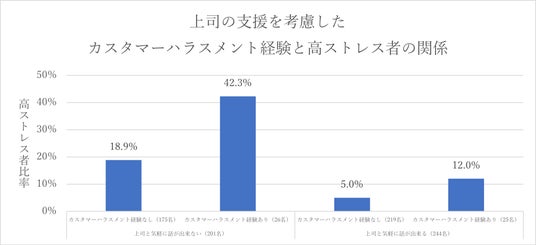 図2 上司の支援を考慮したカスタマーハラスメント経験と高ストレス者の関係