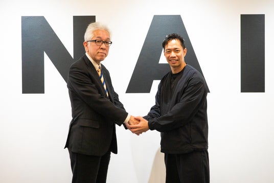 庄中将人札幌市経営雇用支援担当局長(左)と横山三四郎 株式会社NINAITE 代表取締役社長(右)