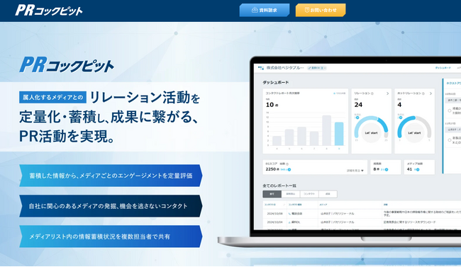 株式会社ベクトル(本社:東京都港区、代表取締役会長兼社長:西江肇司、東証プライム:6058、以下ベクトル)の子会社である株式会社アンティル(本社:東京都港区、代表取締役:桂俊成、以下アンティル)は、メディアごとのエンゲージメントを定量評価できる、メディアリレーション資産化ツール「PRコックピット」を事業会社の広報部門や企業の広報・PR活動を支援するPR会社向けに10月21日より提供開始いたします。(サービスサイトhttps://lp.pr-cockpit.com)