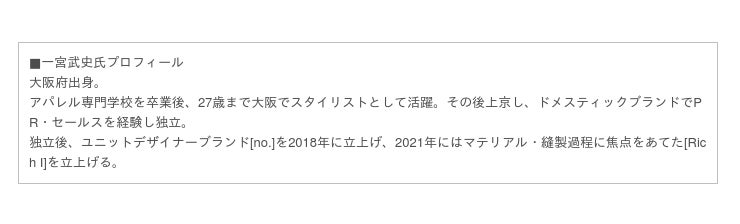 自分の仲間からも、本ラインの商品評価は高く、今後自身のワードローブに入れてくれるという声を多く聞けている事もあり良いものを作れた確信はある。