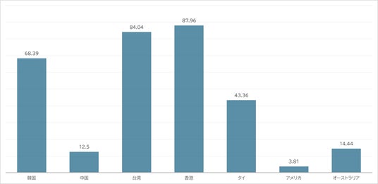 国別訪日潜在値指数(ENJOY JAPANにて算出)