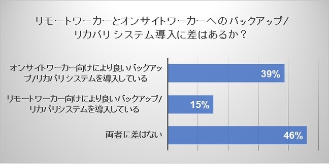 ●46%が、リモートワーカーとオンサイトワーカーで導入しているバックアップ/リカバリ システムに差はないと考えている