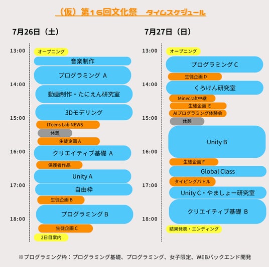 7月26日(土) 14:00~15:30にて小3~中3を対象にAIプログラミング体験イベントを文化祭会場にて同時開催します。
