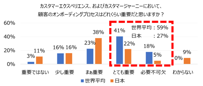 カスタマーエクスペリエンスにおける顧客のオンボーディングプロセスを重要と考える割合が日本は世界に比べ半数以下であることが明らかに