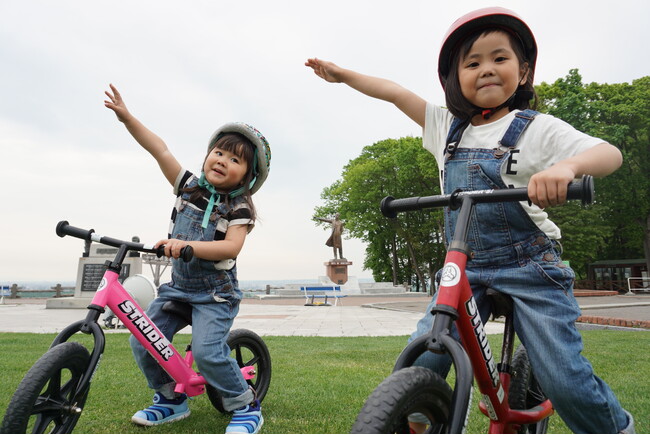 足で地面をけって進むランニングバイク「ストライダー」を楽しめるエリアを設置。ストライダーは無料で貸し出します。羊ヶ丘の雄大な自然を感じながら遊ぶことができます。