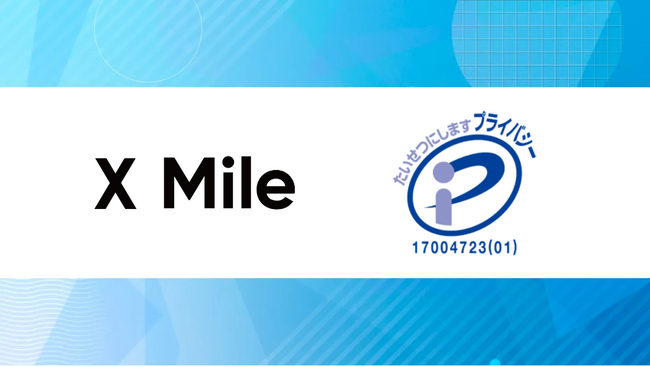 ノンデスク産業向けSaaS・プラットフォームを提供するX Mile株式会社(読み:クロスマイル、本社:東京都新宿区、代表取締役:野呂 寛之、以下「当社」)は、一般財団法人日本情報経済社会推進協会(JIPDEC)より、プライバシーマークの認定を取得したことをお知らせいたします。