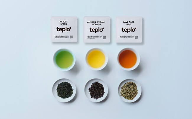 teplo公式茶葉はリーフタイプの茶葉です。茶葉本来の香りを毎回新鮮な状態で楽しんでもらうため、無着香の茶葉のみを取り扱い、抽出1回分に個包装しています。パッケージのQRコードを公式アプリで読み取るとお茶の情報が表示されるほか、当社が提供するティーメーカー「teploティーポット」での抽出設定を行うことができます。