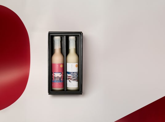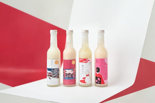 12月上旬には、新年を記念した年末年始限定ラベルの紅白甘酒も販売予定。招き猫と着物を纏った女性をモチーフにした、温かみのあるデザインを採用しています。一年間の感謝を込めて、身体に優しく心温まる甘酒はご自身へのご褒美や、お年賀の贈り物にもおすすめです。