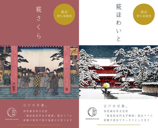 廣度院コラボ紅白甘酒ラベル(左:糀さくら 右:糀ほわいと)