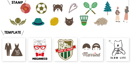 ▼スタンプ、テンプレート機能(標準で2000種類以上用意)