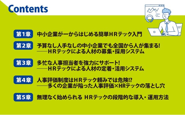 本書ではとりわけ中小企業におけるHRテックの選定・導入・運用時によくあるトラブルや、それを予め回避する方法をふくめ、HRテックを使いこなすためのコツを提示しています。