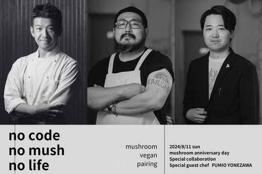 2014年 表参道にオープンした日本初(※1)のマッシュルーム料理専門店『MUSHROOM TOKYO(R)(マッシュルームトーキョー)』は、この度 8/11「山の日(マッシュルームの日)」に、乃木坂にあるレストラン「No Code」オーナーシェフ:米澤文雄 氏をSPECIAL GUEST CHEFに迎い入れ、コラボディナーを実施いたします。