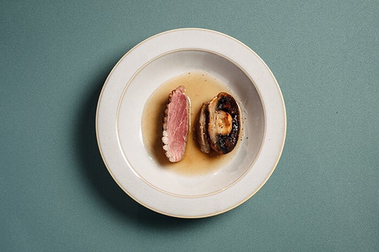 グリルマッシュルームと川中さんの鴨 マッシュルームの出汁