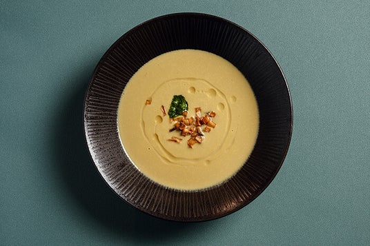 カボチャとマッシュルームの冷製スープ サルサヴェルデ スパイスオイル