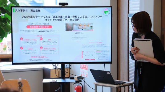 続いて、資生堂の保健師を担当している團野さんより、「資生堂が行っている女性の健康プロジェクトの2025年のテーマ(適正体重、貧血、骨粗しょう症)とコラボレーションする形で、クレアージュ東京で受診できる資生堂限定の特別健診プランを作成させていただきました。」と報告がありました。資生堂では、体組成や骨密度など企業健診では必須項目となる機会が少ない項目をセットにした特別プランの提供を実施したものの、アンドエスティHDと同様に申込数0件に終わる結果に。この結果に関して團野さんは、「7月に実施したためほとんどの社員が定期健診受診済みの状況だったことや、業務外で自主的に受診することが障壁となった可能性を考えています。また、都内限定プランとして打ち出したため、公平性の観点から周知が難しかったことも挙げられます。」とコメントしました。